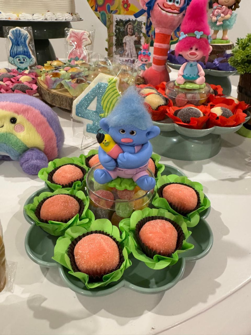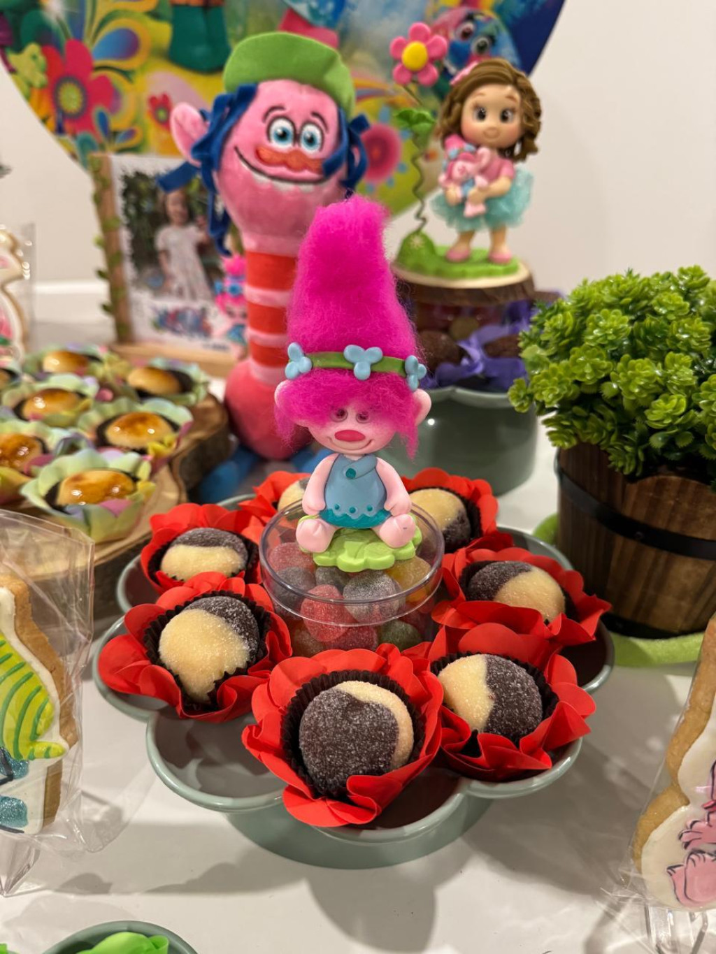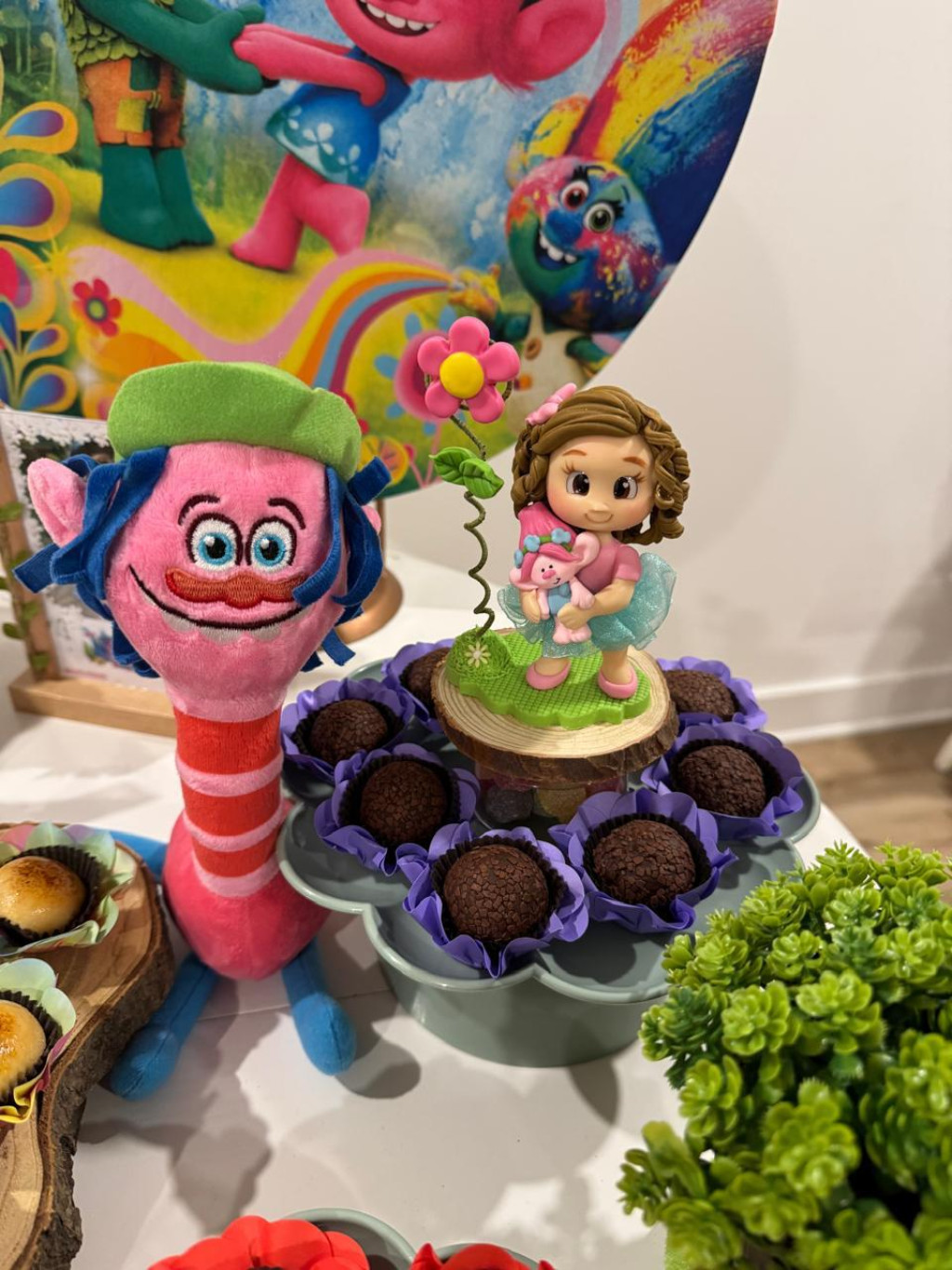 Outro motivo que faz do tema Trolls uma excelente escolha é a facilidade na organização: existem muitas opções de decorações, lembrancinhas, toppers, personalizados e artigos prontos para compra. Isso deixa o planejamento acessível e versátil para diferentes estilos de festa — desde algo simples até uma superprodução. O resultado é uma celebração animada, mágica e cheia de boas vibrações, exatamente como toda festa infantil merece ser.